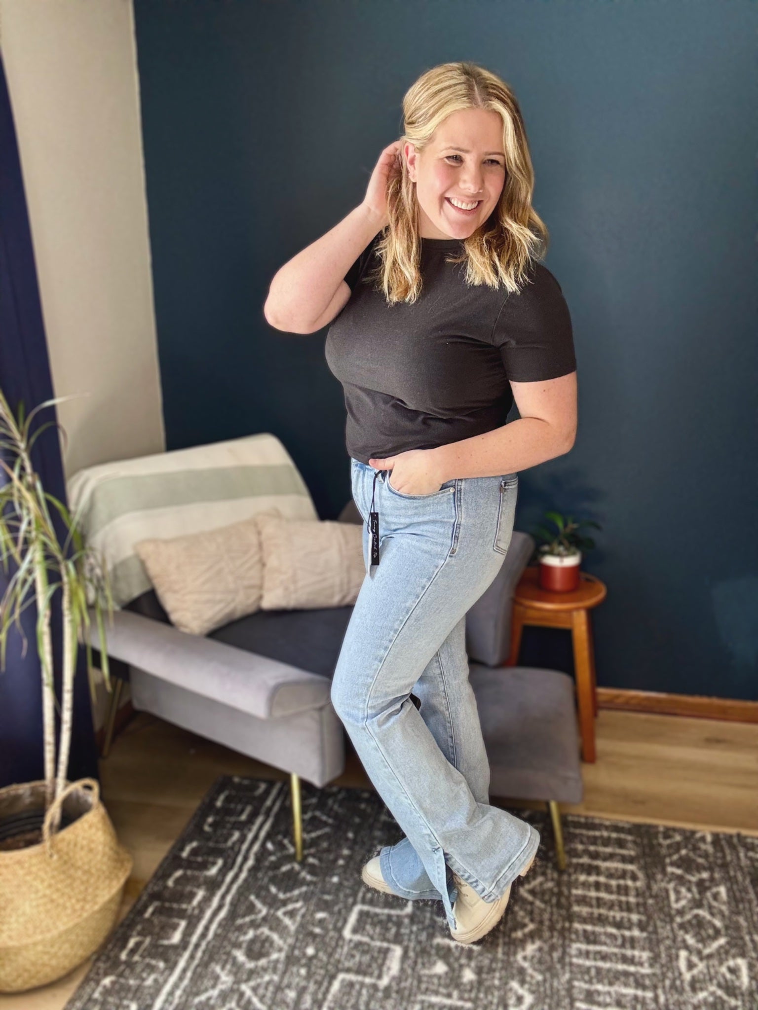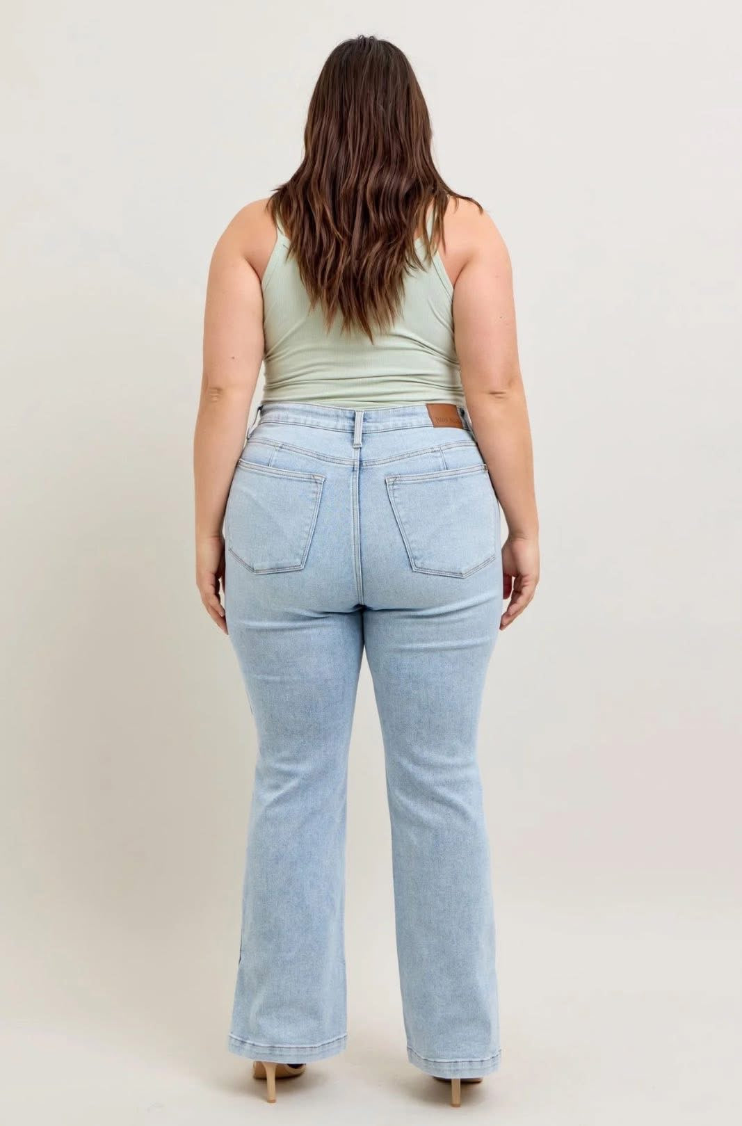 Judy Blue High Waist Tummy Control Vintage Wash Side Slit Slim Bootcut Denim Jeans