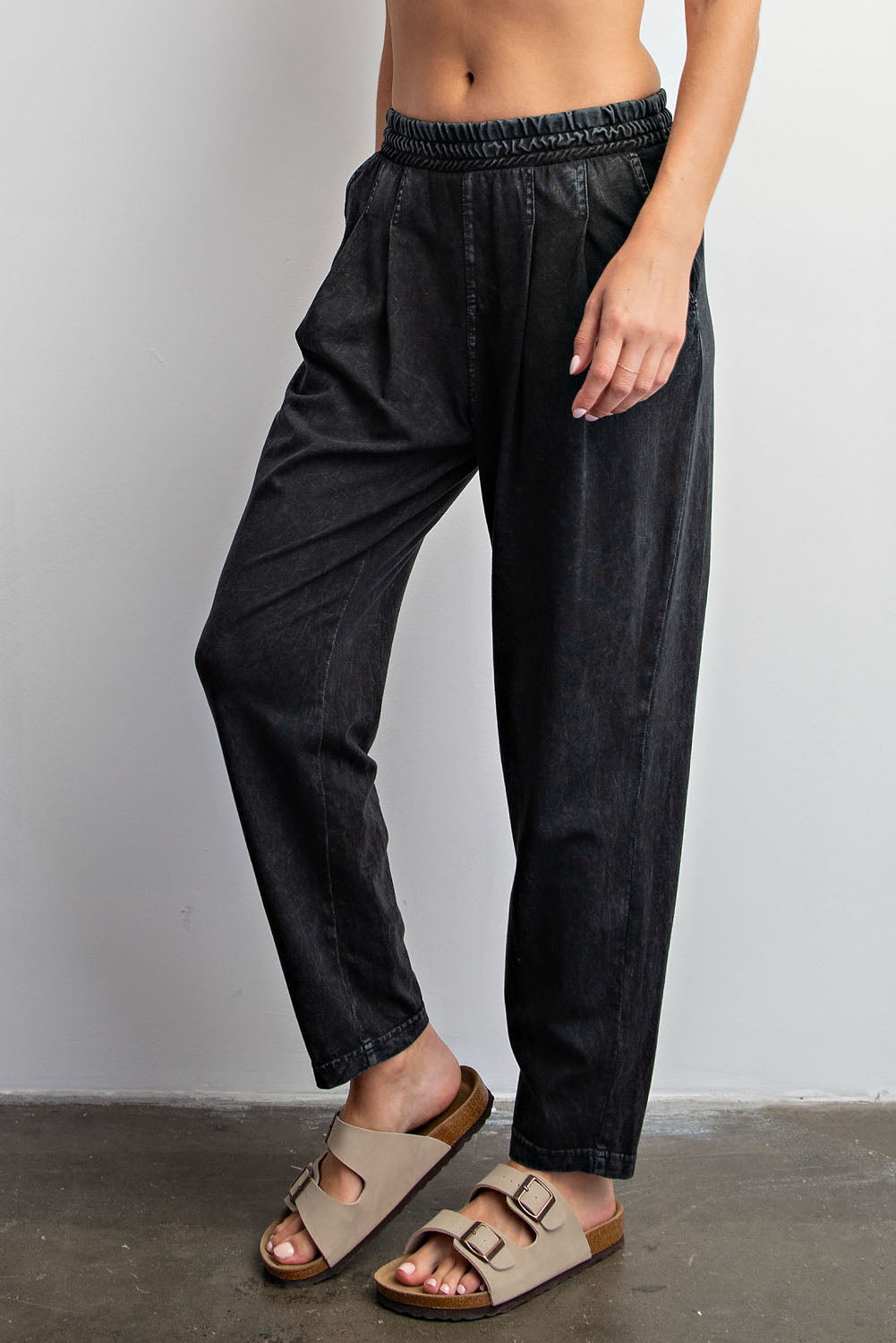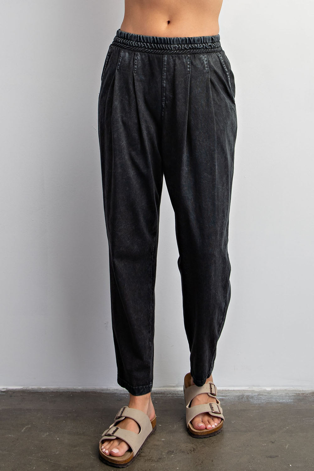 Elevate your casual style with our mineral washed cotton pants featuring an elastic waistband for ultimate comfort. The chic pleat pintuck design adds a touch of sophistication, while side pockets and a back pocket provide practicality for your essentials. Paired with a matching top, this jogger-style ensemble offers a relaxed yet fashionable look, perfect for picnics, spa days, casual outings, or a day at the beach. Enjoy a blend of comfort and style in this versatile and effortlessly chic outfit.