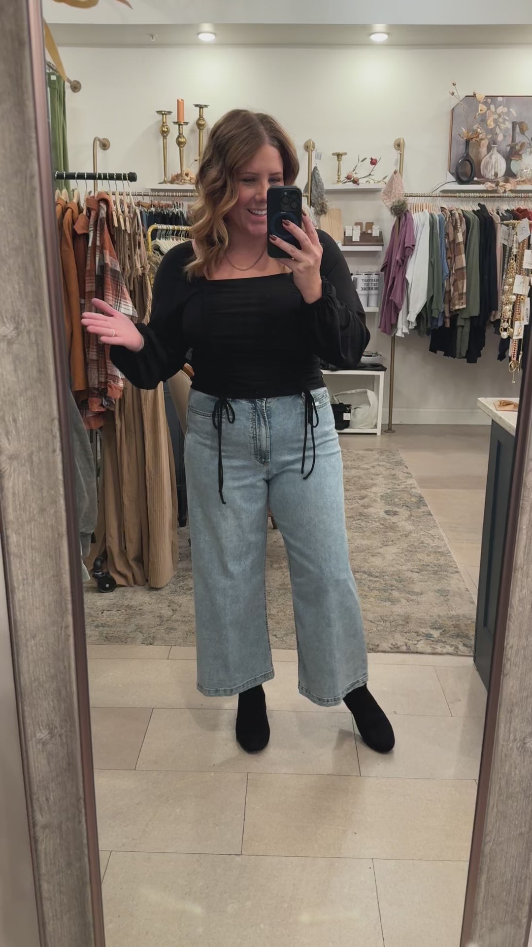 On or off the shoulders, this top is fun and sassy! Pair it with a pencil skirt for the office, mini skirt for a night out on the town or jeans to go grab dinner with the girls. Lot's of options with this one!