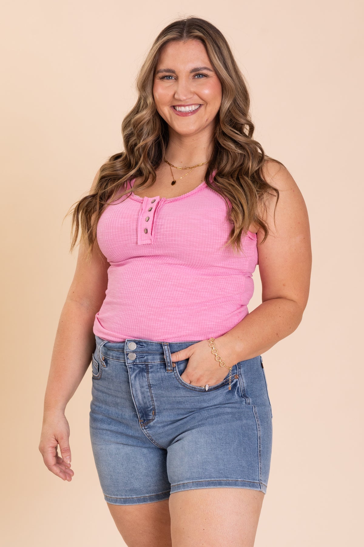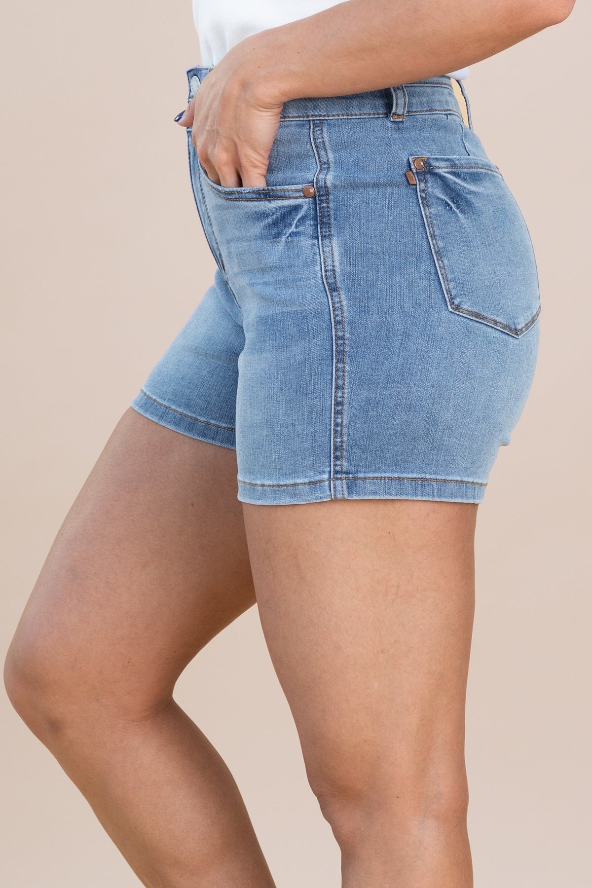 These cool denim shorts offer a very flattering fit with a tummy control design and longer inseam. You can also cuff them, for a personalized length preference. A classic medium wash means these will be in your closet forever! Pair with quite literally, anything in your closet. Moisture-wicking performance fibers help keep you cool, dry and comfortable. Evaporative cooling realeases heat and moisture.