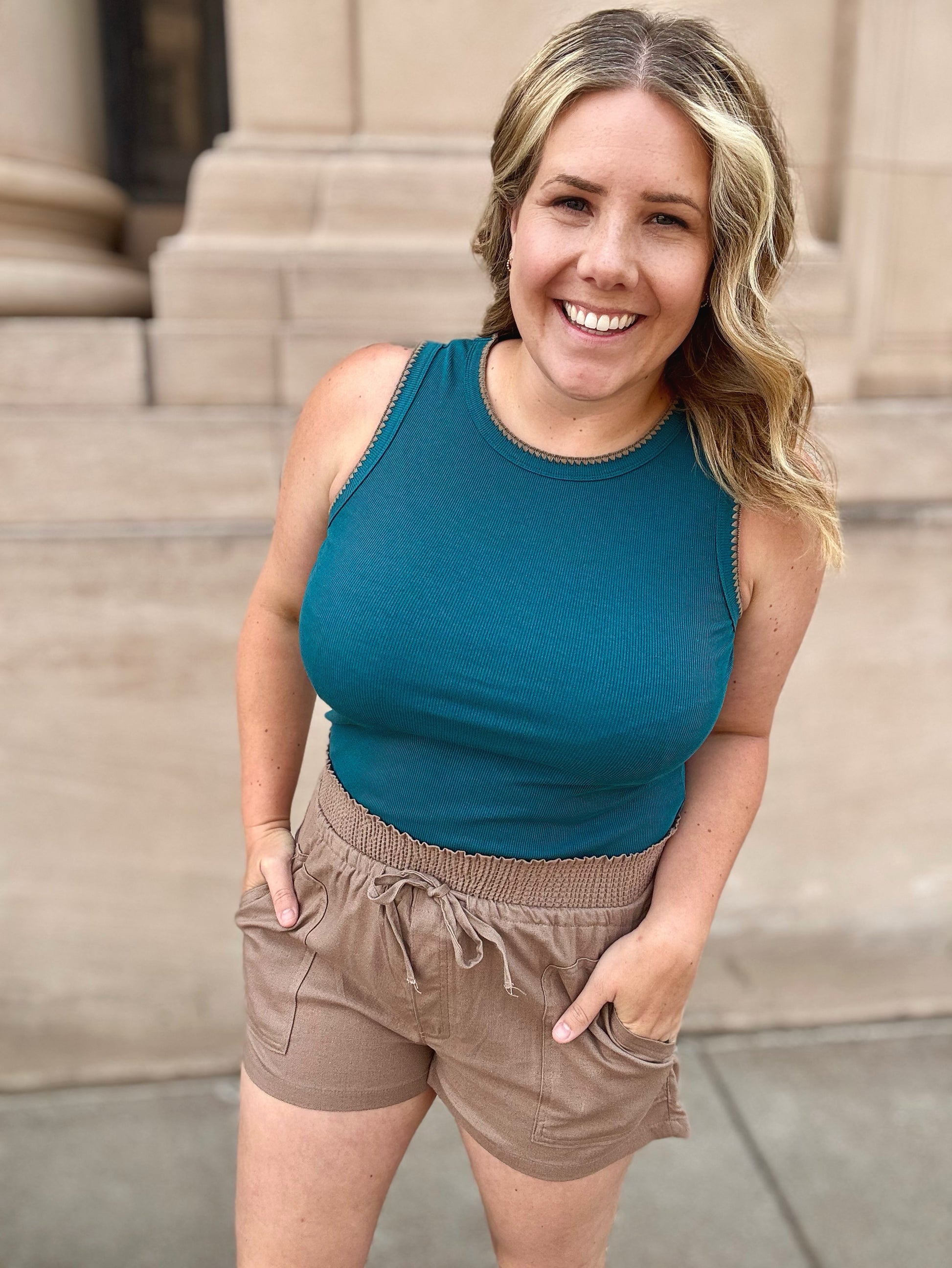 This tank has the cutest details with the crochet trim! Stay true to size for this tank.