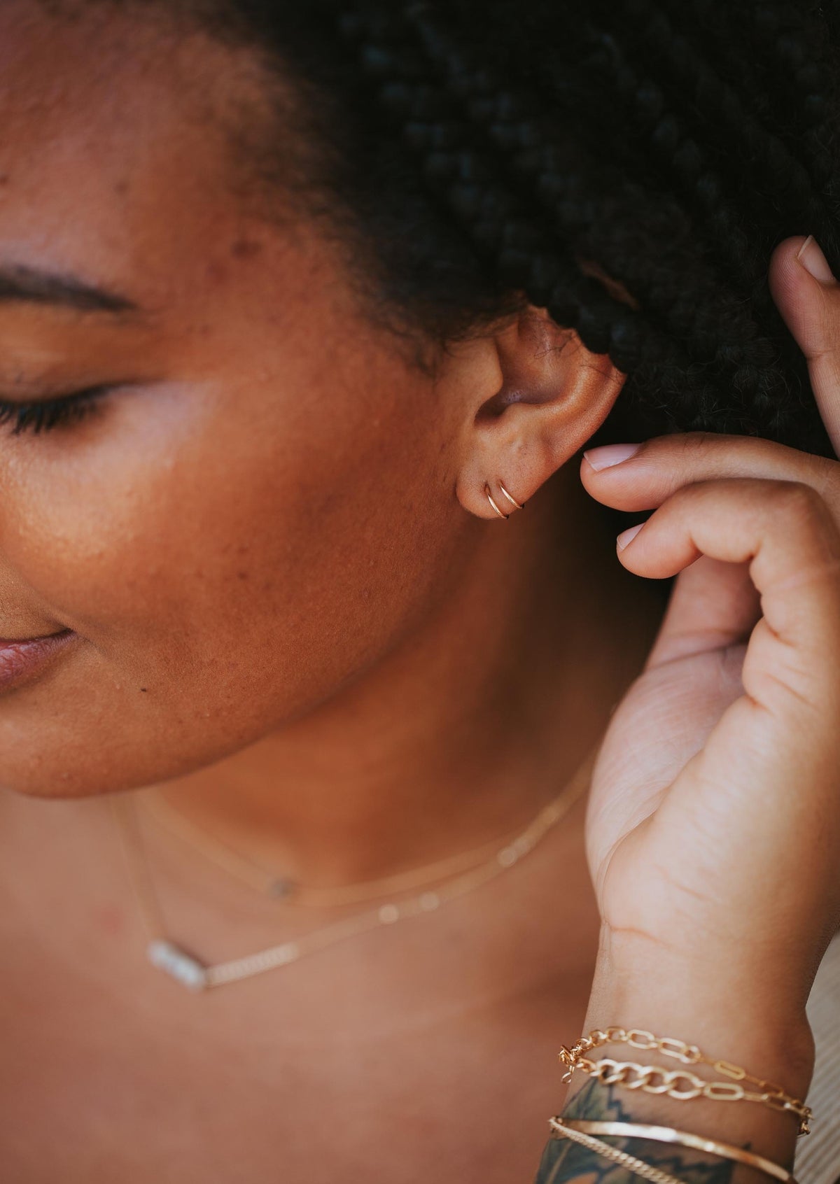 Inspired by Hello Adorn's best-selling Tiny Twist earrings, this earing is made so you can achieve a double piercing with a single earring, while having the versatility of changing it up daily! This is the smaller 6mm size. Grab the 8mm size here.