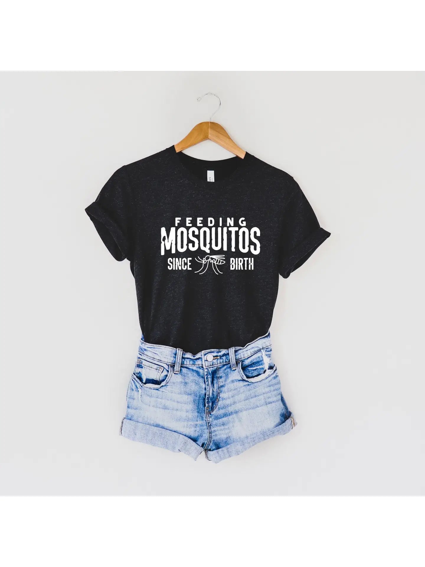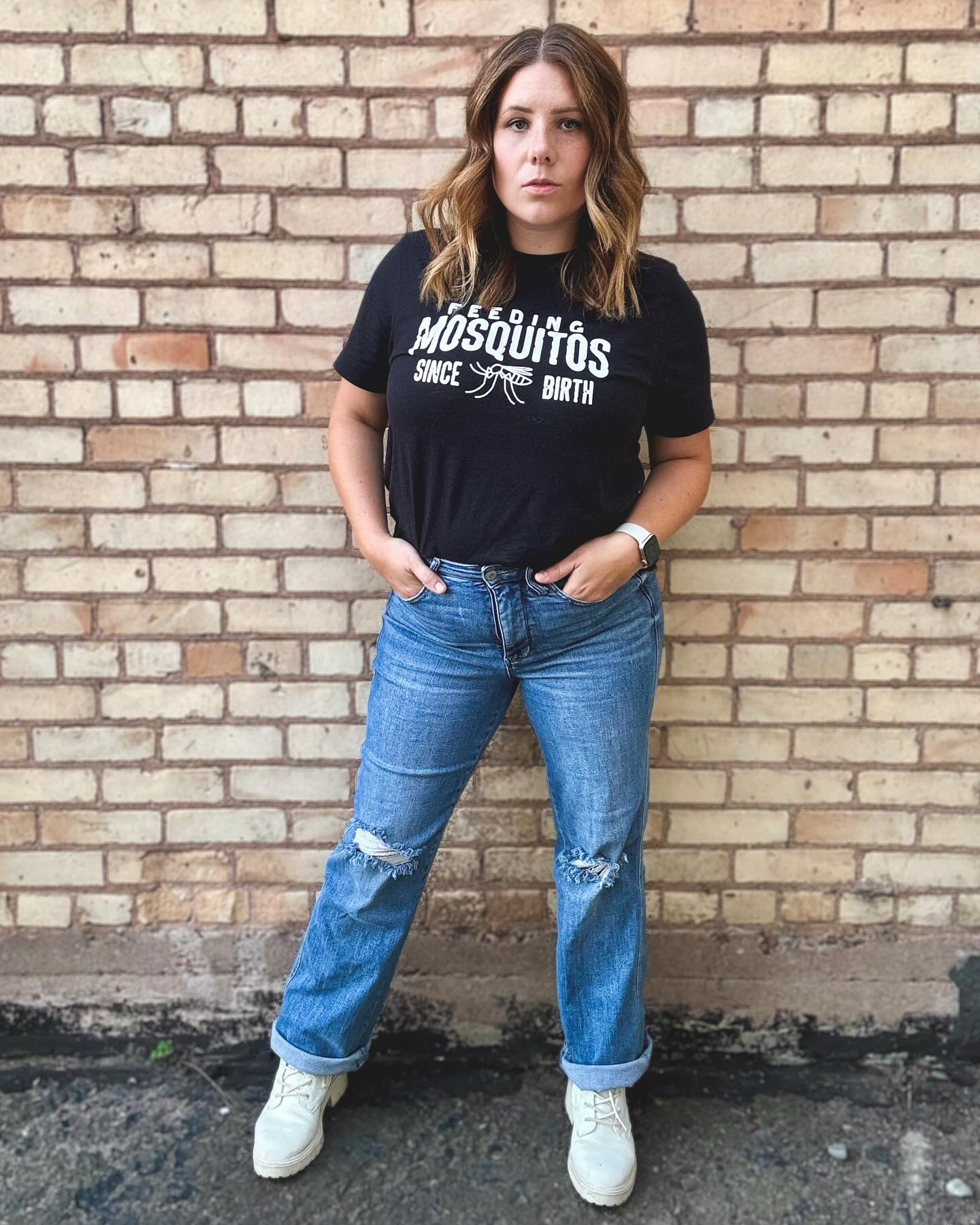 Who else is feeding these pesky bugs?! I swear, my blood calls out to them! This tee is perfect for you or a fella in your life. Nice and soft with some stretch makes it super comfy! Stay true to size or size up one to two for an oversized fit.