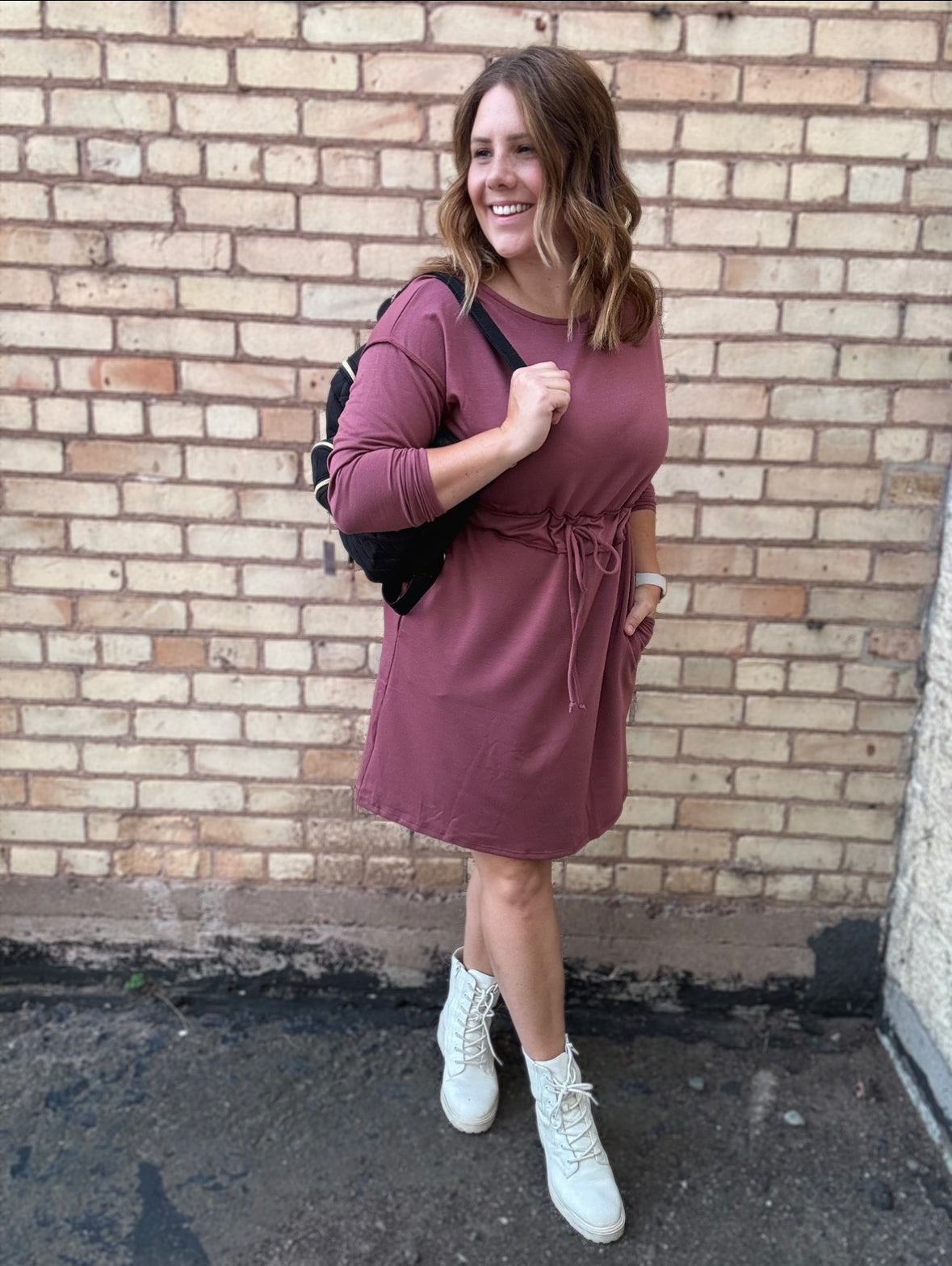 If you’re looking for an easy outfit, grab this casual dress! Throw it on for a no-brainer outfit with your favorite sneakers or boots. Grab some leggings in the cooler months to get more wear out of this cute dress.