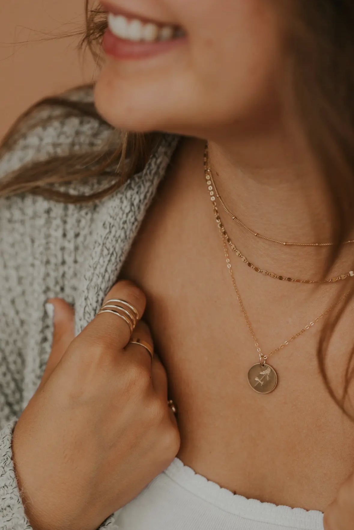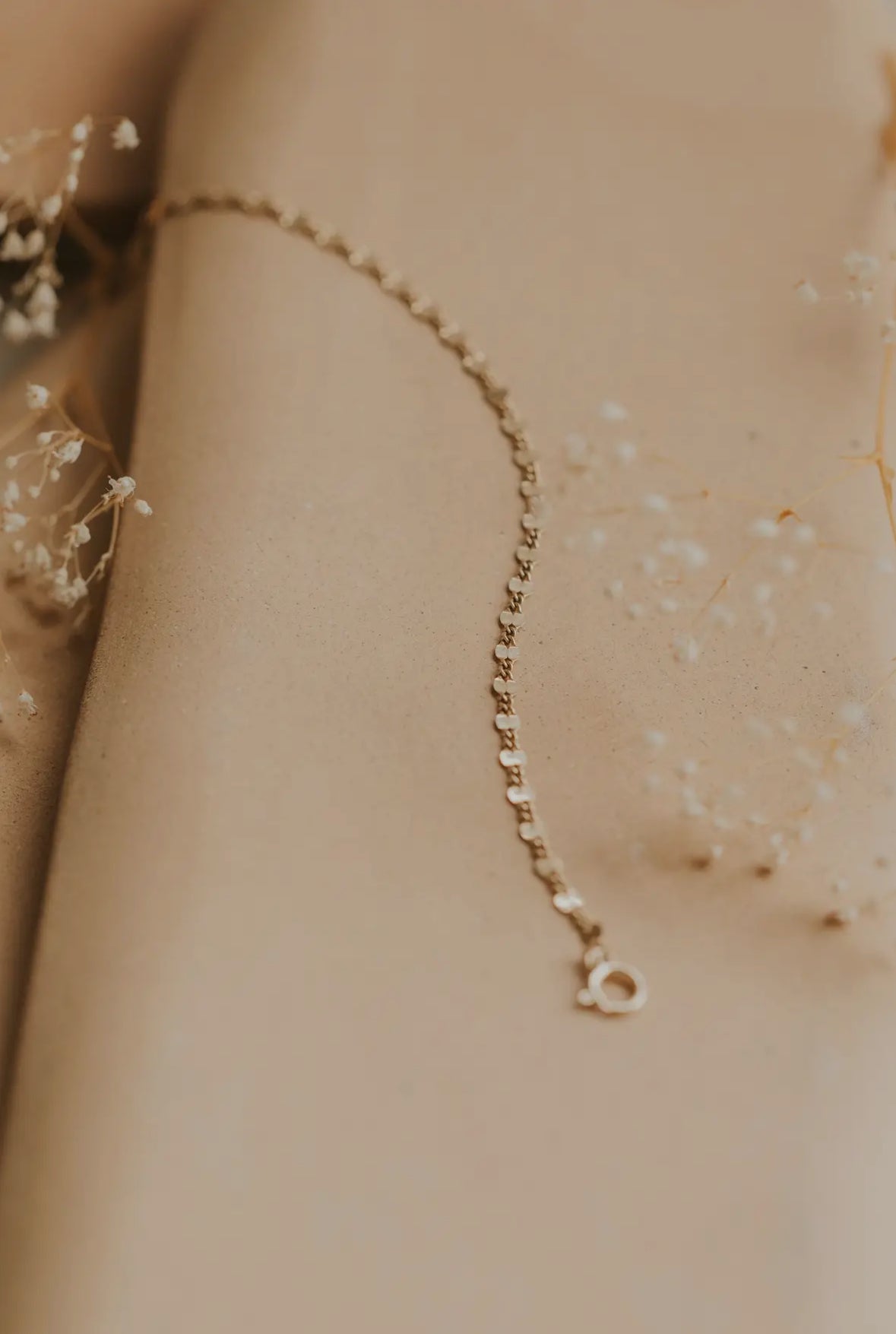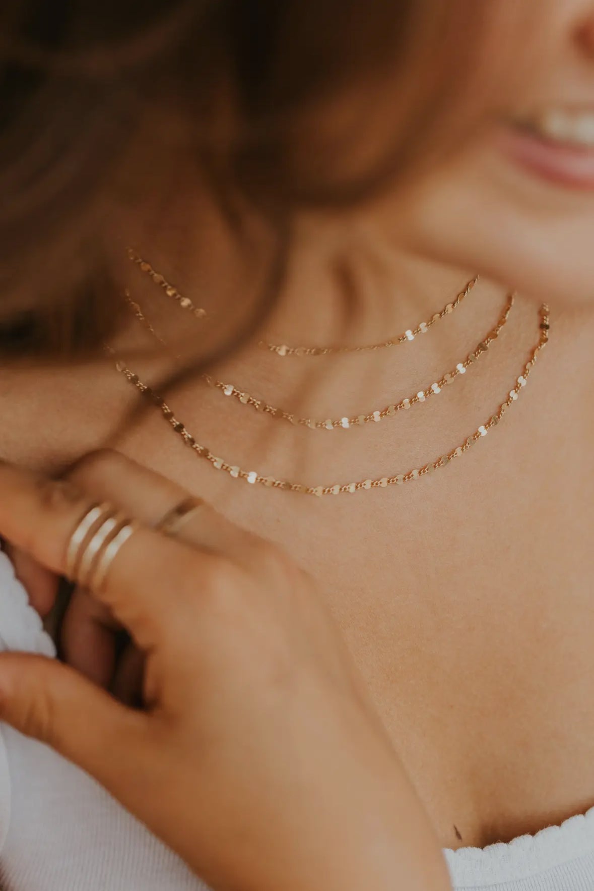 A miniature take on our fan favorite Confetti Choker. This chain is a little more subtle - but still gives all the sparkle. * 2mm dapped long & short chain. * 16" in length. * Available in 14kt Gold Fill. * Love this chain? Check out our Lenny Bracelet. * Handmade in Eau Claire, WI. Hello Adorn jewelry is handmade so each piece will be unique and may vary slightly from what is pictured