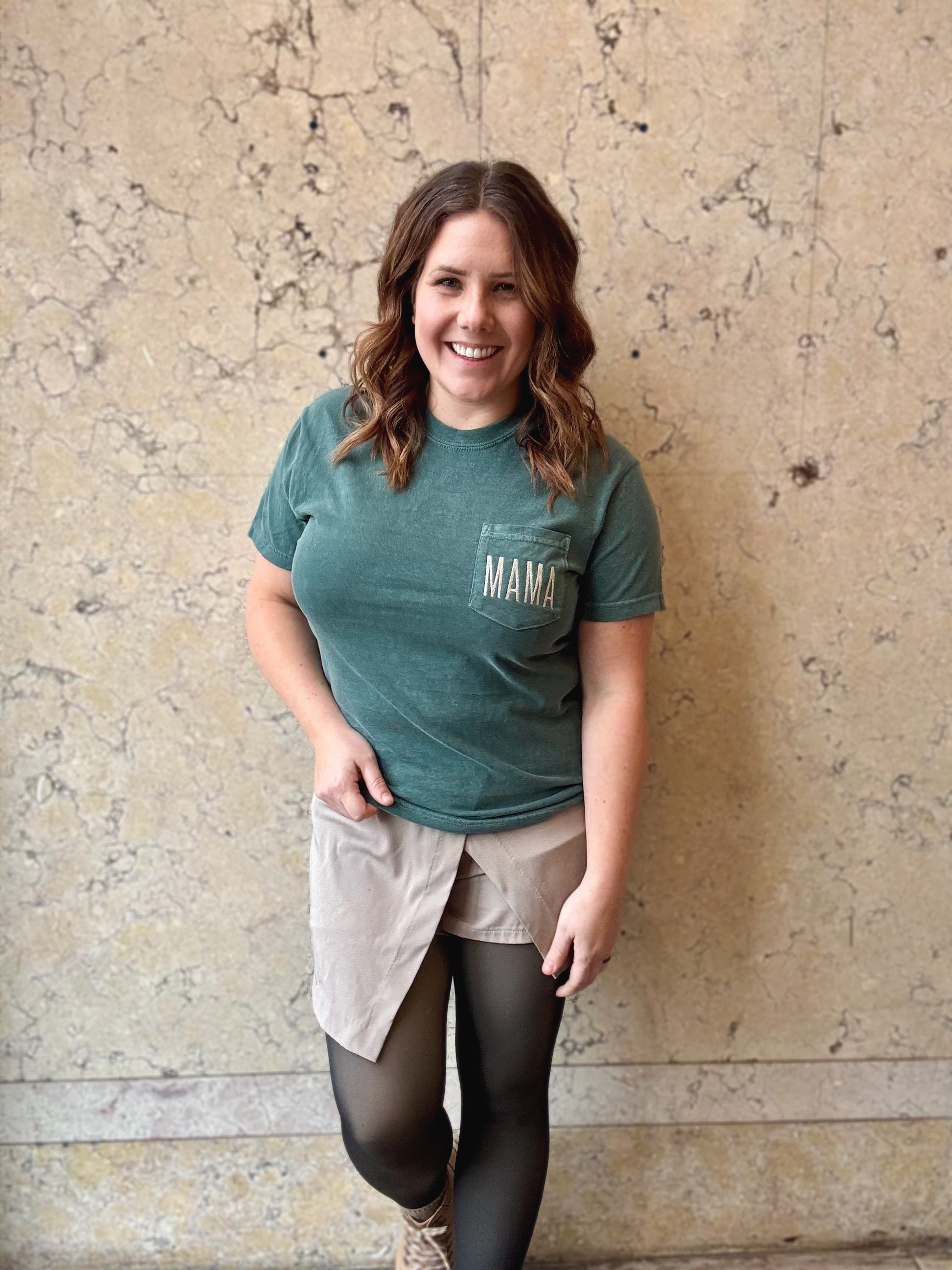 Looking for the perfect simple Mama tee? Well this is IT! The thread compliments the tee color so well, and who doesn't love a little embroidered moment?!