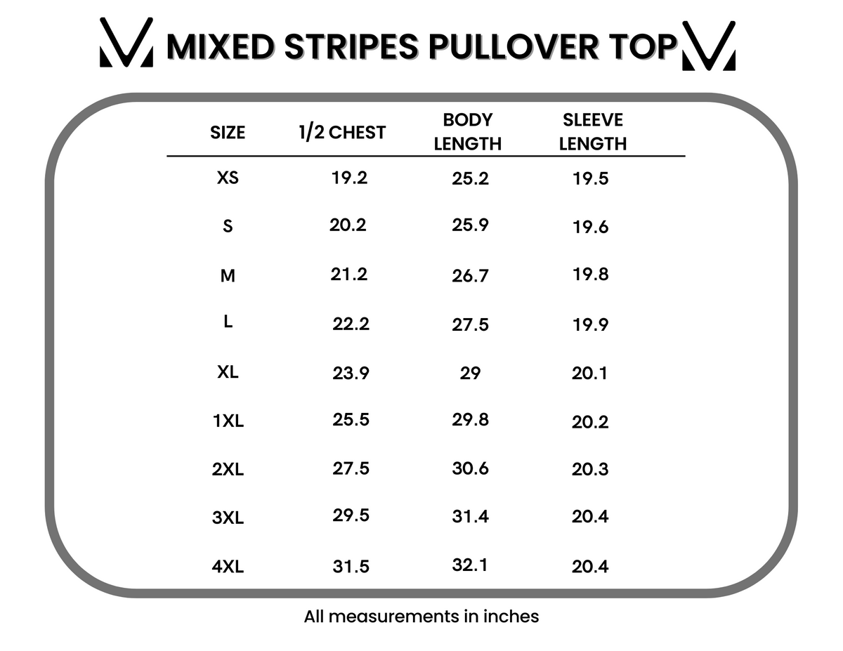 Indulge in the chic and exclusive style of our Mixed Stripes Pullover. The perfect combination of sophistication and comfort, the mixed stripes design adds a touch of artistic flair to your wardrobe. This pullover top has cuff sleeves, a crew neck line, and comfort fabric softness!