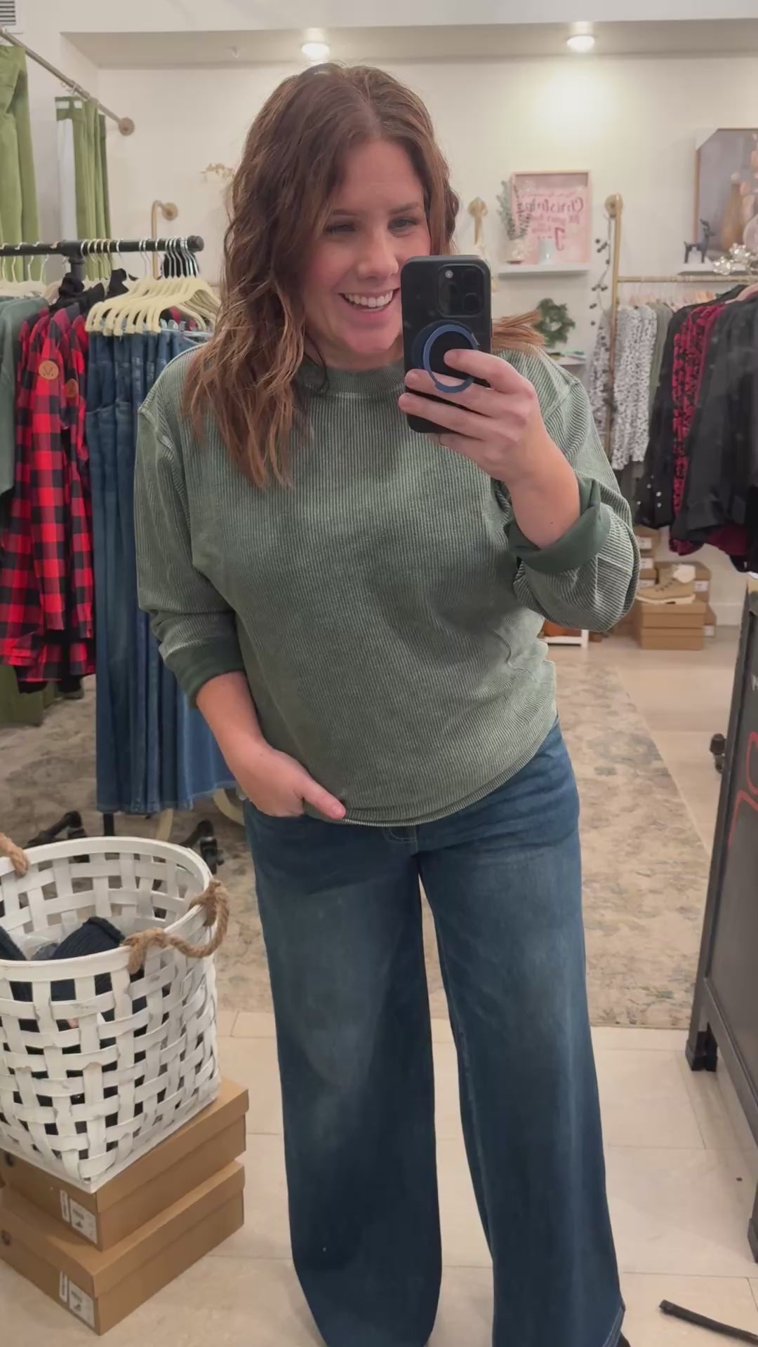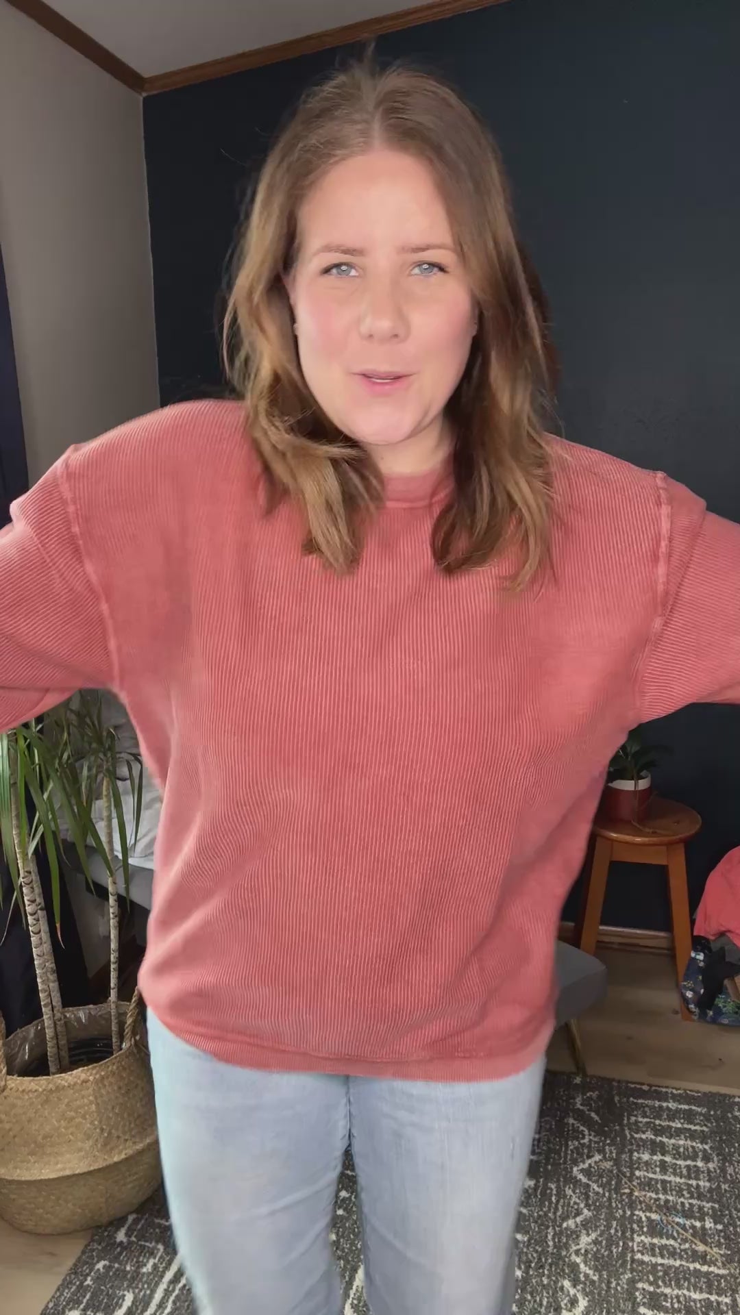 Alli is a medium/large and wears the medium for a nice relaxed/oversized fit.