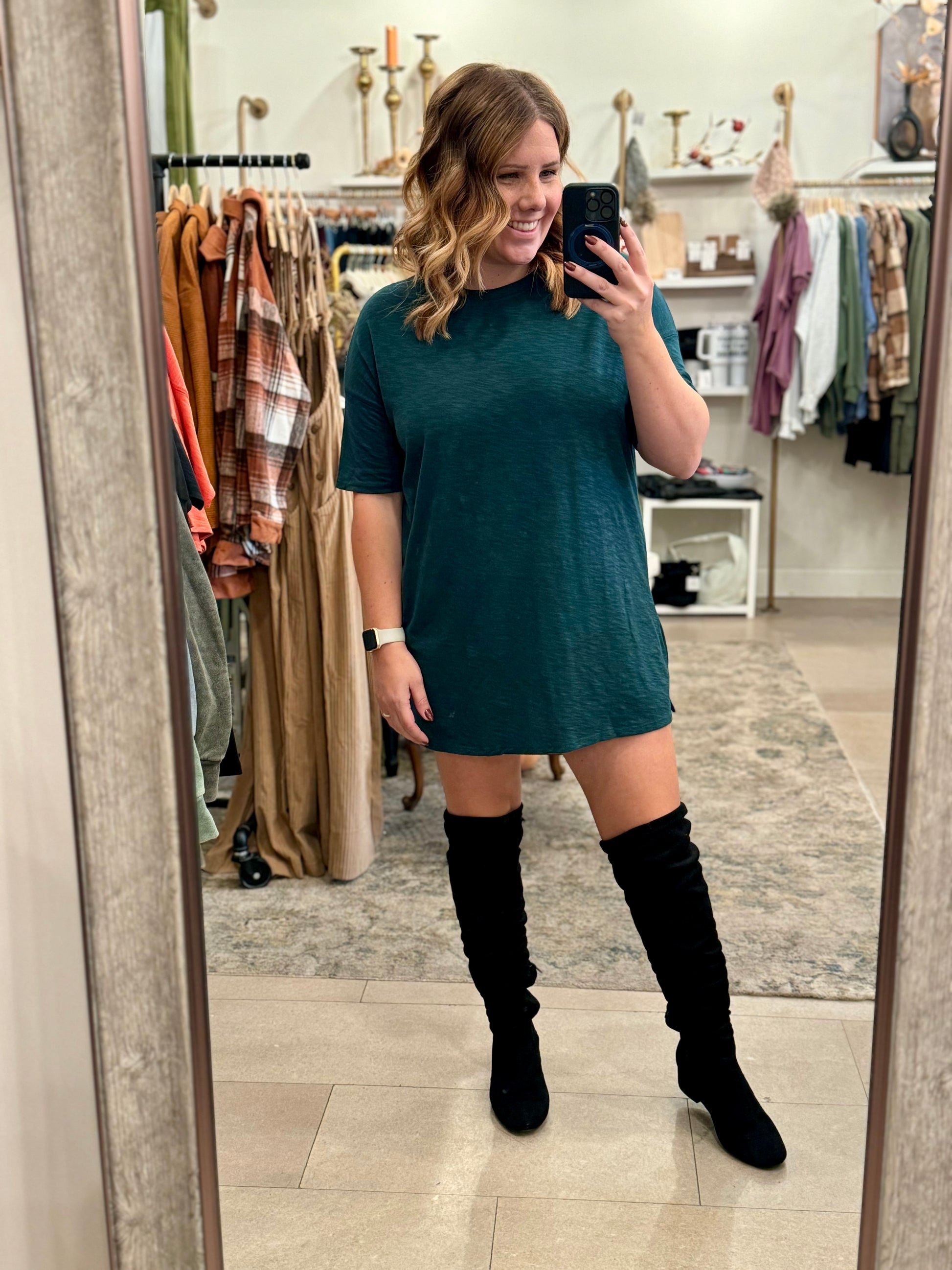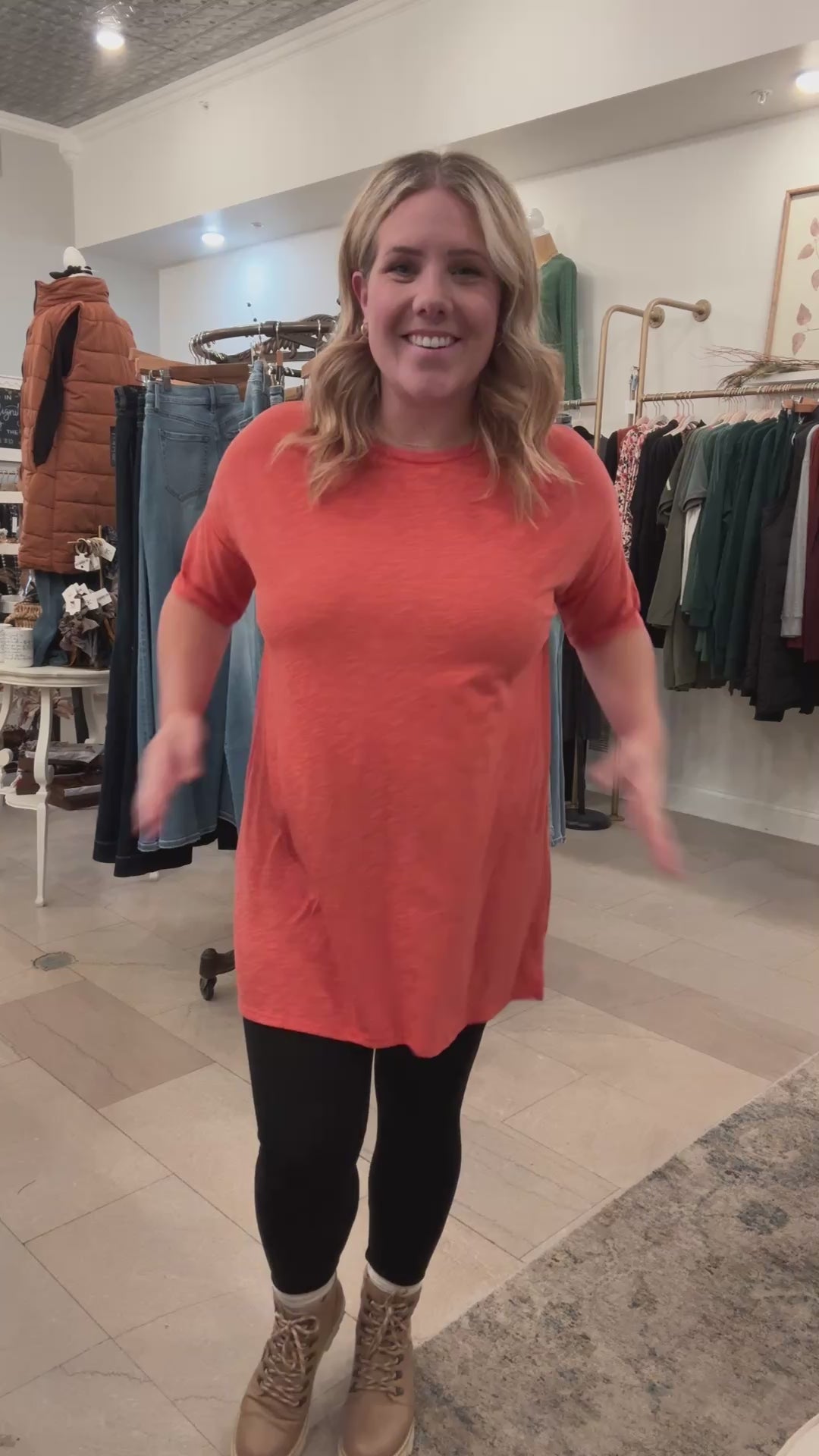 This oversized tunic tee is your go to all year round item for your closet. Wear it alone or layer it up and you will be comfy cute all day long!