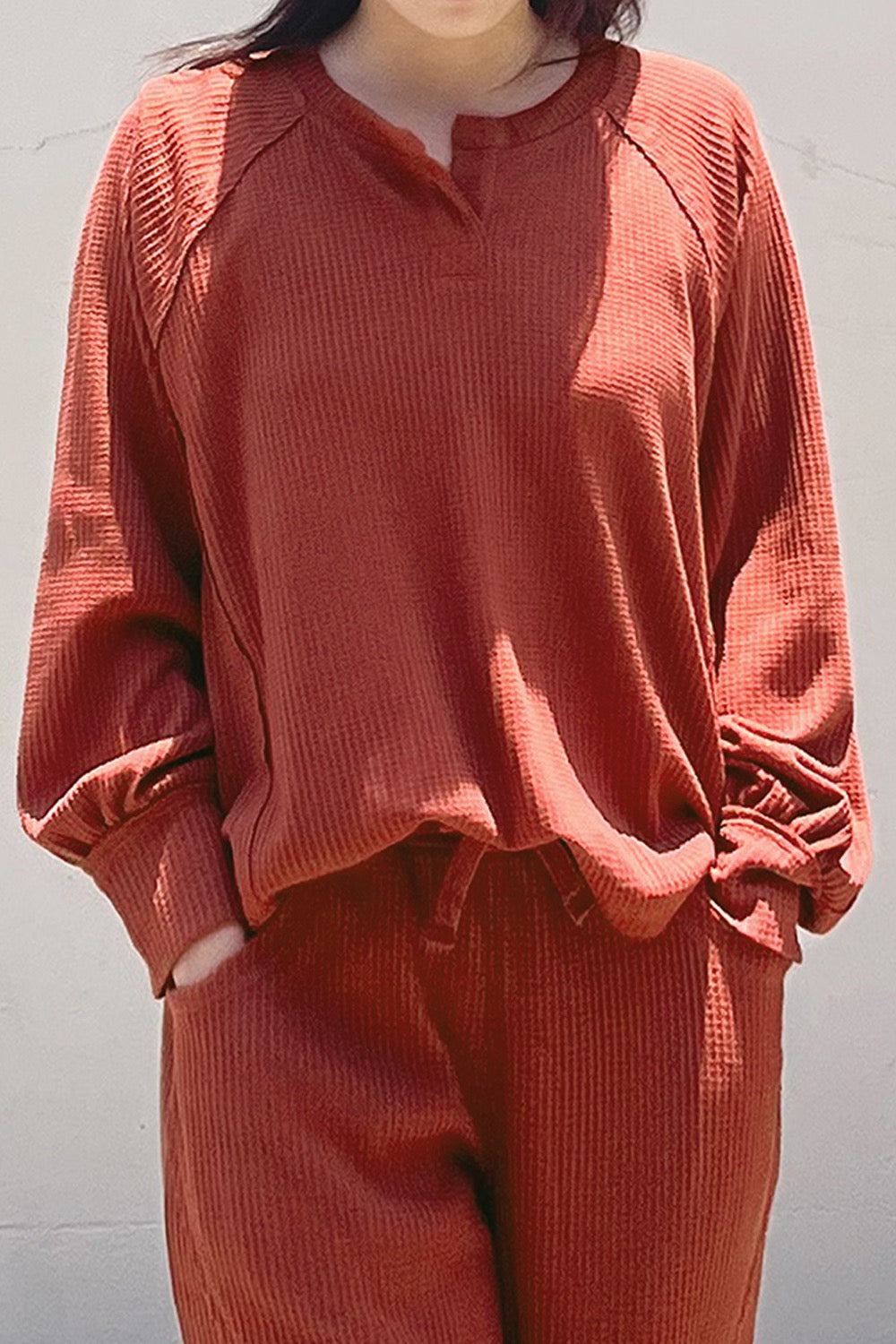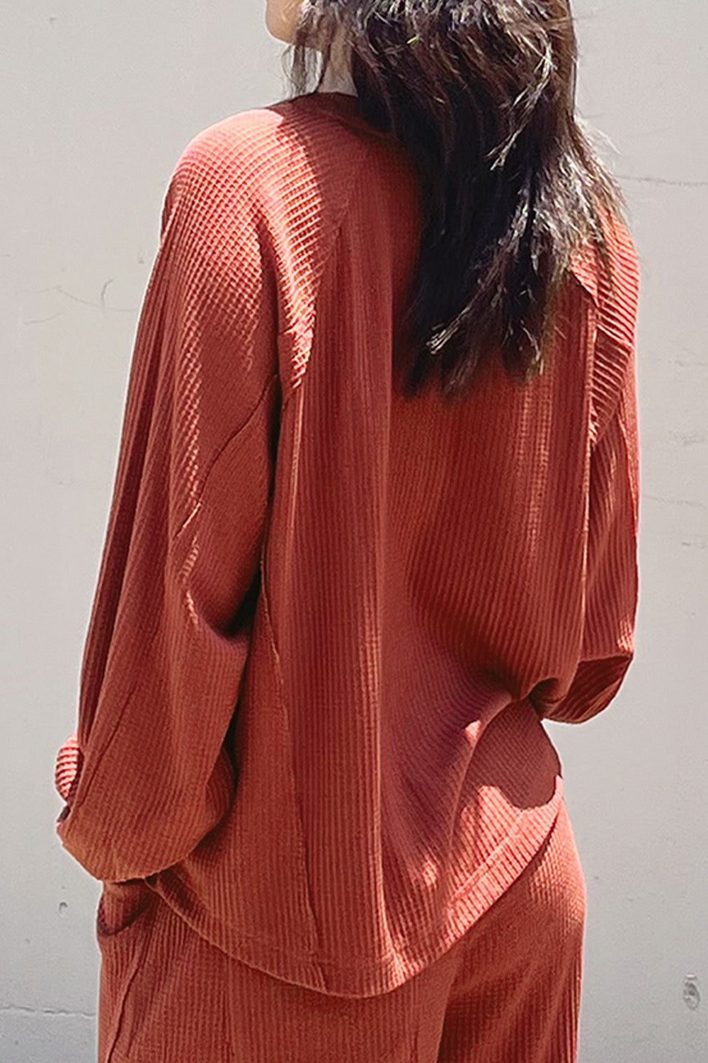 A little undone, a little effortless—this lightweight waffle Henley is your go-to for laid-back days. With its cropped length, raglan sleeves, and raw edge finish, it brings just the right amount of edge to a relaxed silhouette. Easy, textured, and quietly cool.