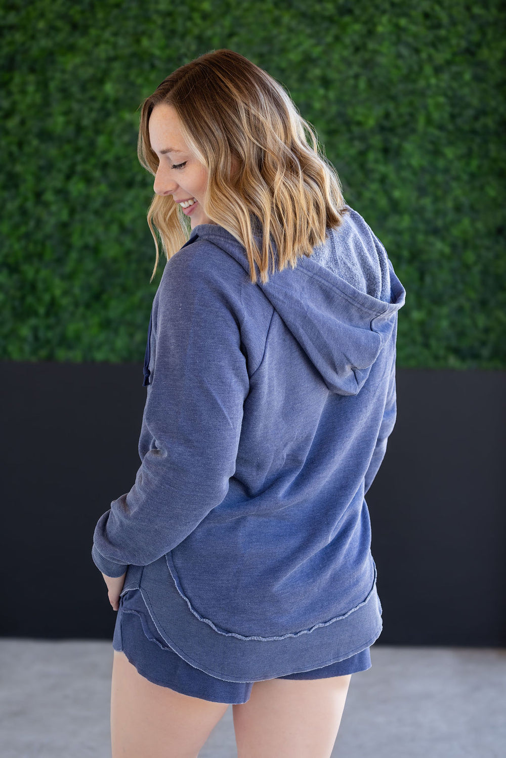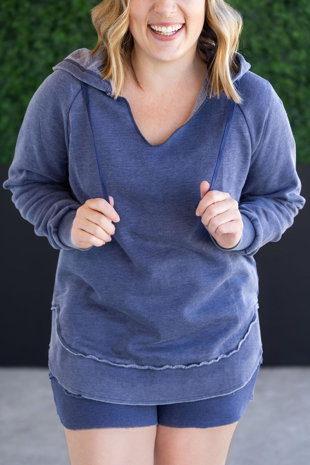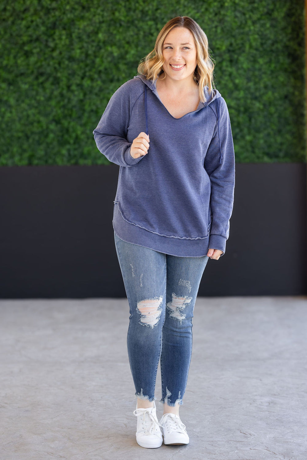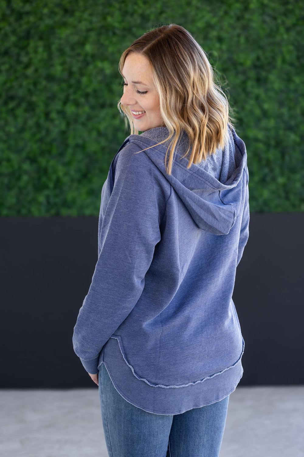 Embrace spring and summer in this vintage wash hooded pullover! It features a vintage wash for a unique look and curved bottom hem, cuffs, and hoodie. The perfect grab and go hoodie for your spring and summer adventures!