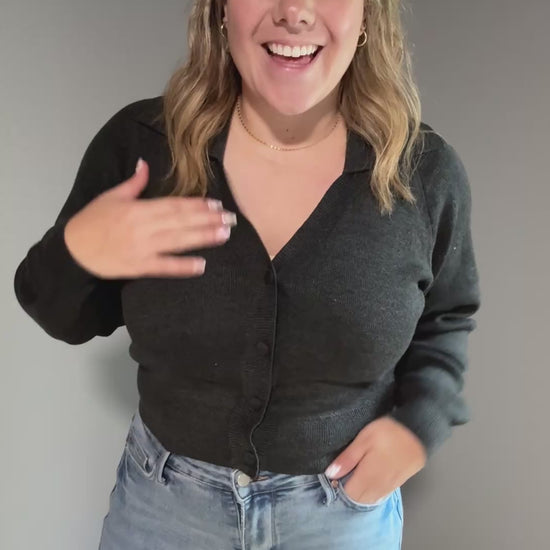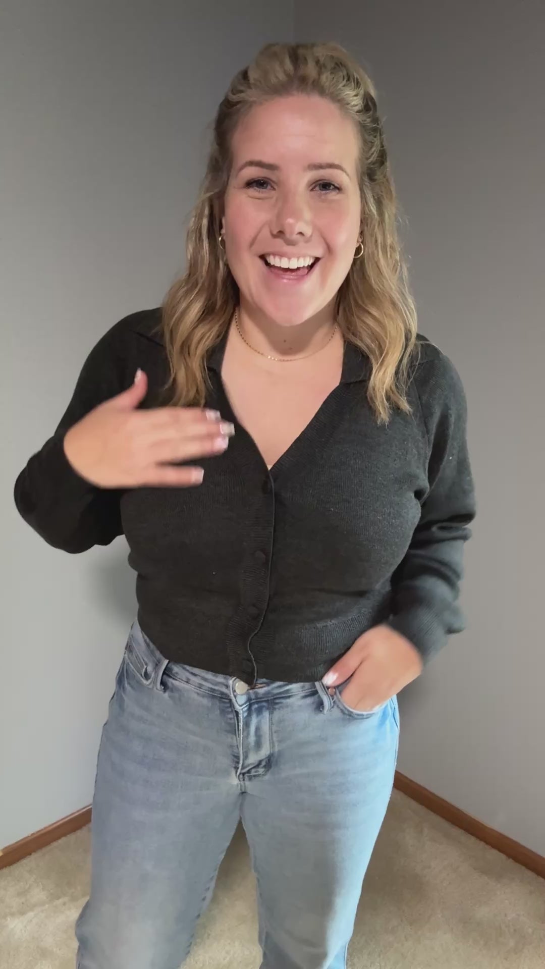 This sweater will be a staple for years and years! The shorter fit is perfect to pair with high rise bottoms or to wear open with a dress for an extra layer. It is stretchy and the fit is fabulous!